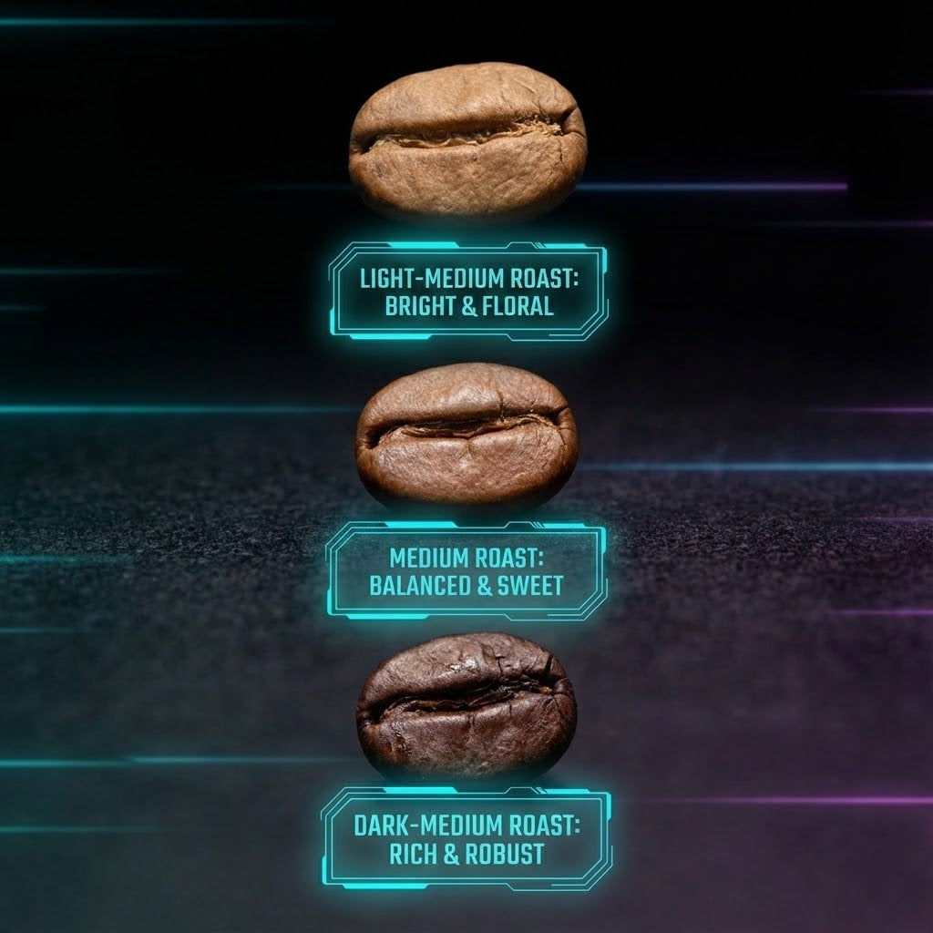 (fun for espresso drinks with chocolate added)Medium-Dark Roast:lean into richer, bolder flavors with deeper caramelization, chocolate tones, and a heavier body. They deliver intensity and warmth while still holding onto a touch of origin nuance before crossing into full dark territory.